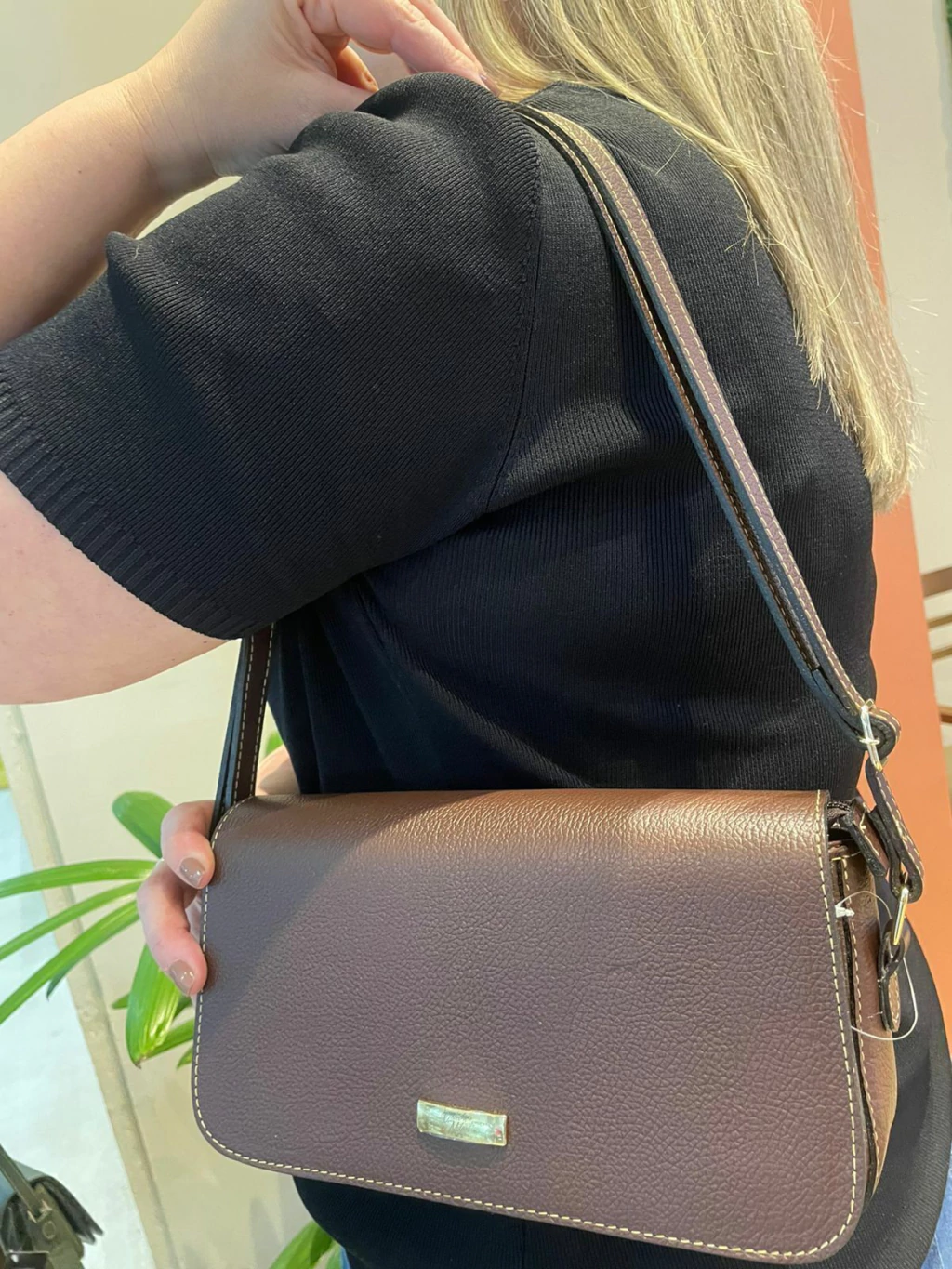 A Bolsa Angelina é uma peça charmosa e estruturada, ideal para mulheres que buscam um modelo pequeno, porém extremamente funcional e sofisticado. Confeccionada em couro legítimo, com fabricação própria Valeska Milani, essa bolsa une qualidade artesanal e design inteligente.