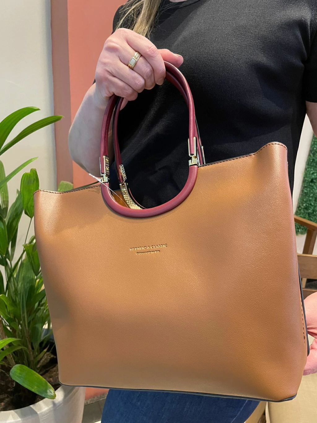 A Bolsa Carolina é uma peça que une estrutura, elegância e praticidade para quem busca um modelo social e chique. Seu design permite um uso sofisticado de mão, realçado pelo detalhe em metal dourado na alça, um charme delicado e de alta qualidade, que não oxida, seguindo a linha premium da loja.
