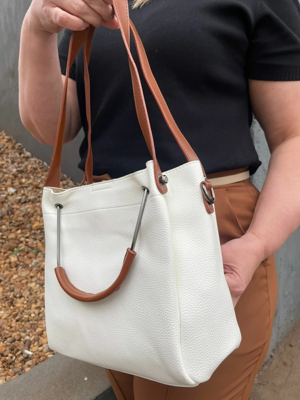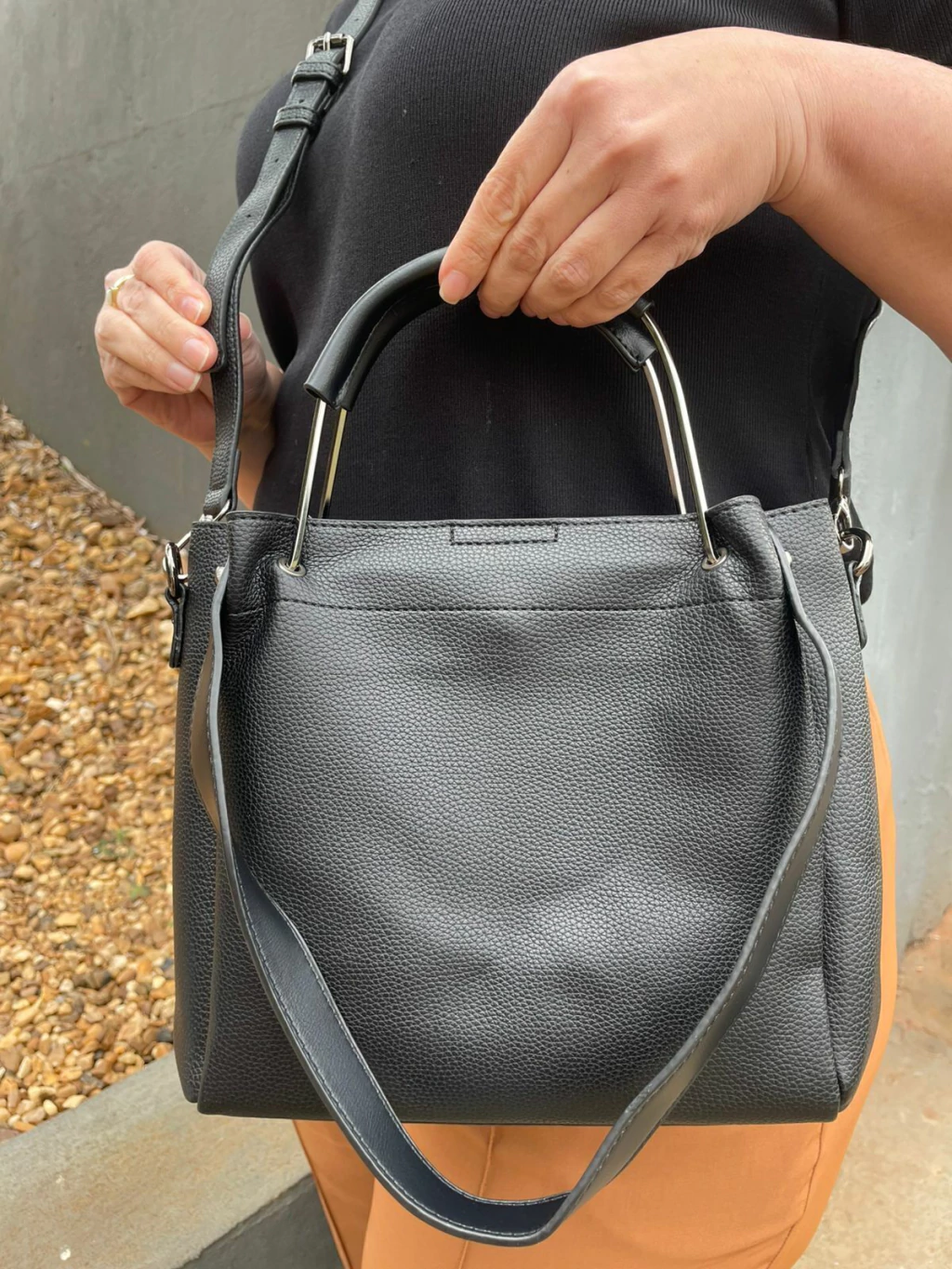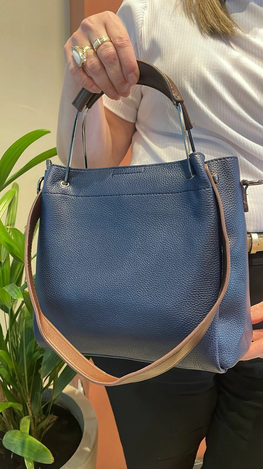 Além da alça de mão, possui uma alça longa para usar no ombro, deixando a alça de mão caída para um visual despojado, e uma alça transversal removível para usar como preferir.