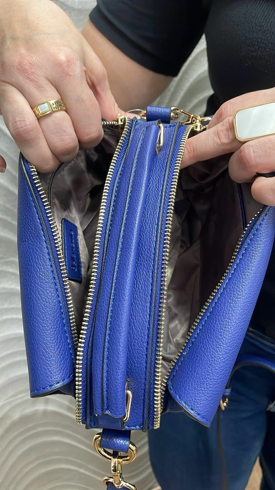 No interior, conta com um bolsinho com zíper e um compartimento especial para chaves ou itens pequenos, facilitando o acesso ao que mais importa no seu dia a dia. E, para completar, ainda possui um bolso externo com zíper na parte de trás, ideal para guardar o celular ou outros itens de uso rápido.