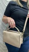 Com um formato compacto, mas surpreendentemente espaçoso, ela pode ser usada transversalmente ou de mão, graças à sua alça removível que se adapta facilmente ao seu estilo e necessidade. O fechamento principal é dividido em duas divisórias independentes, ambas com zíper, proporcionando mais organização e segurança para os seus pertences.