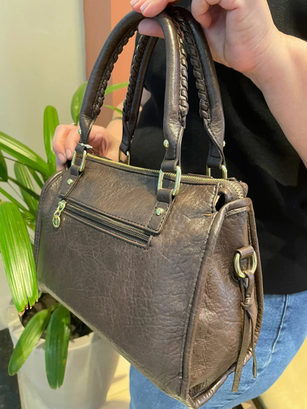 A Bolsa Cyntia é o equilíbrio perfeito entre despojado e moderno, trazendo charme em cada detalhe. Seu tamanho médio e estilo baú diferenciado fazem dela a escolha ideal para quem busca praticidade sem abrir mão da elegância.