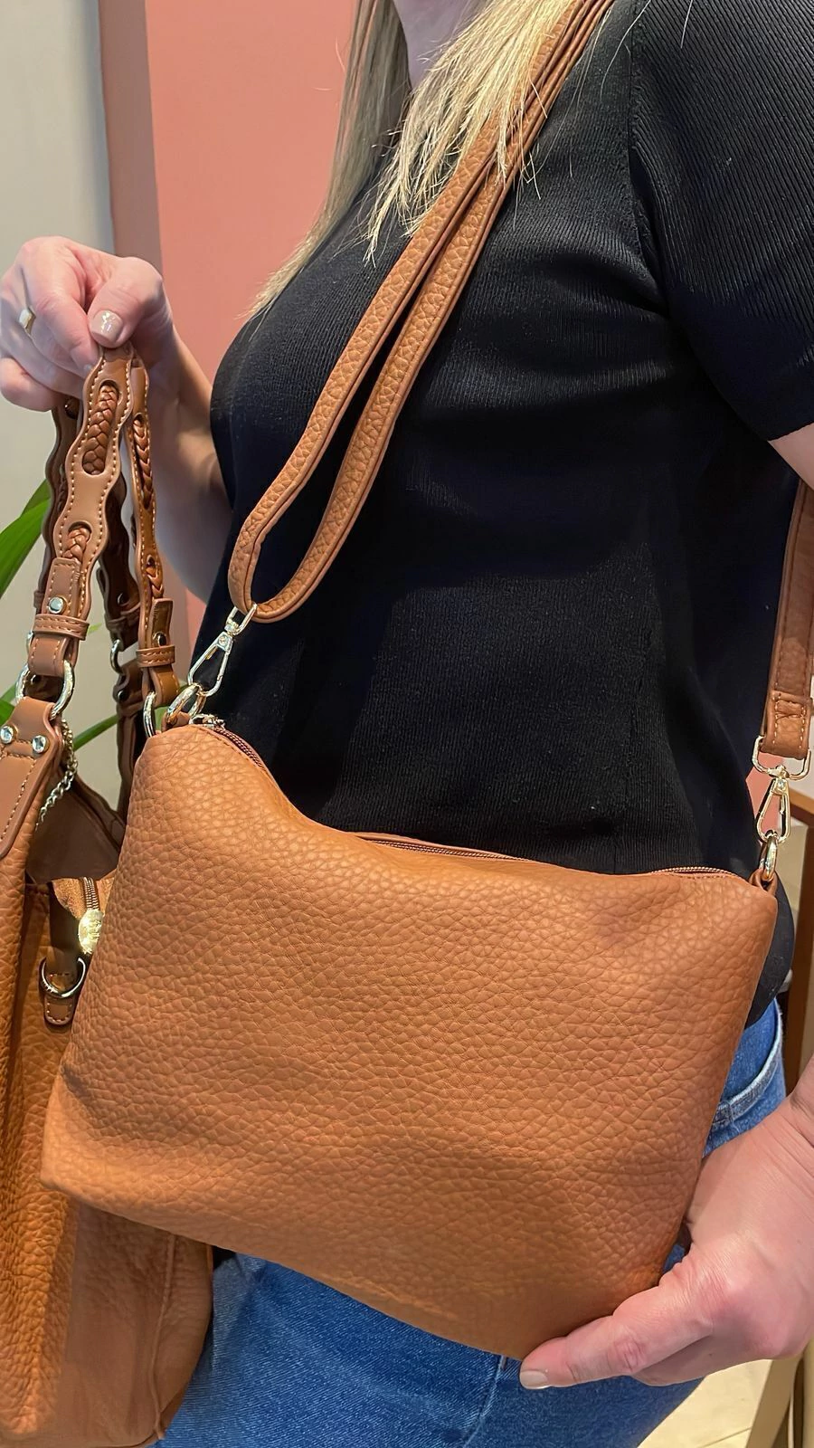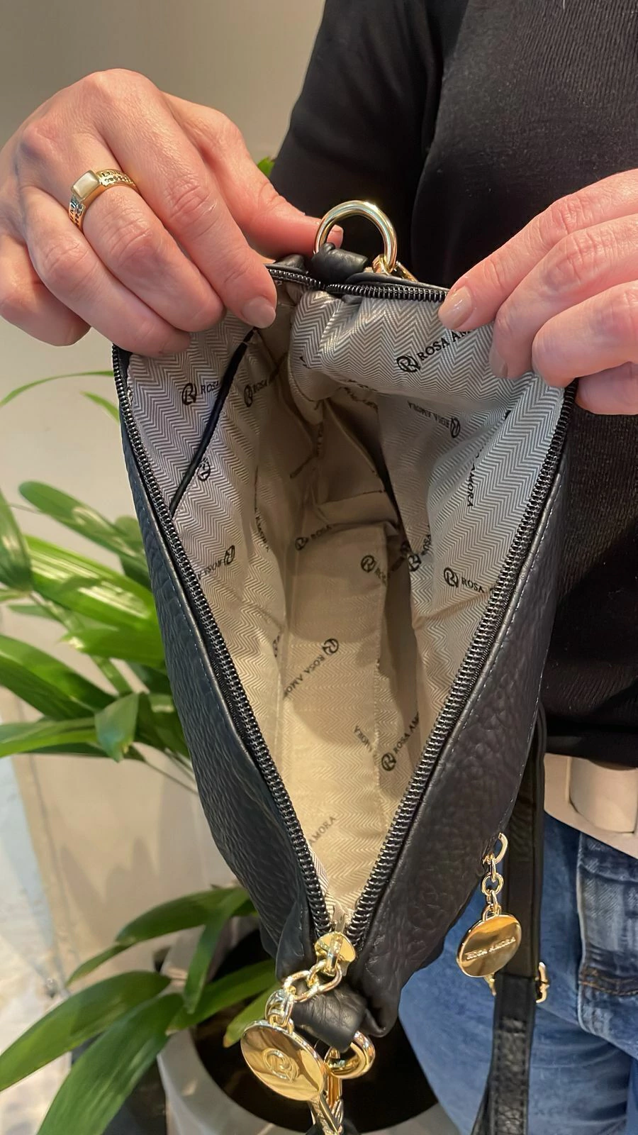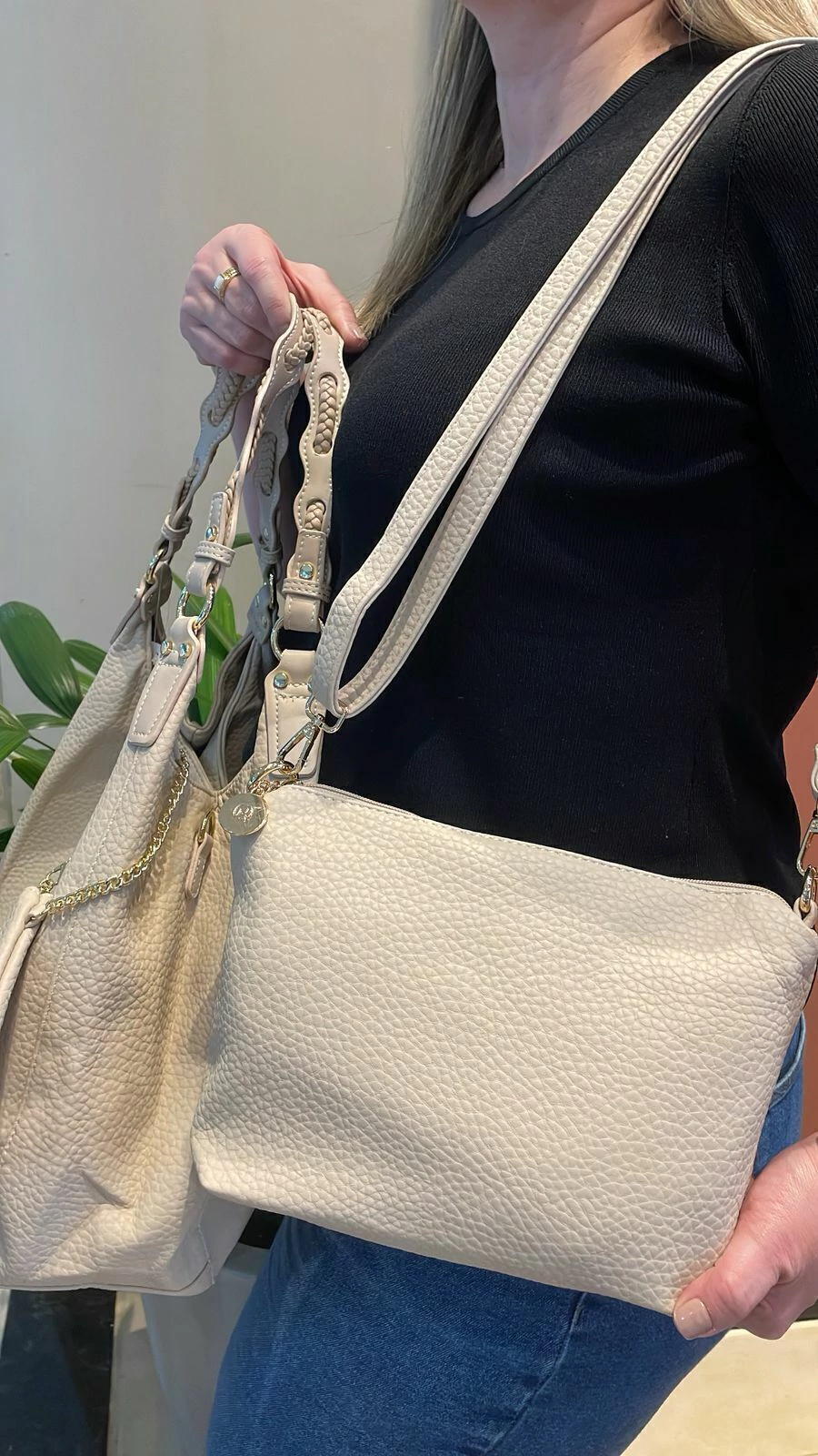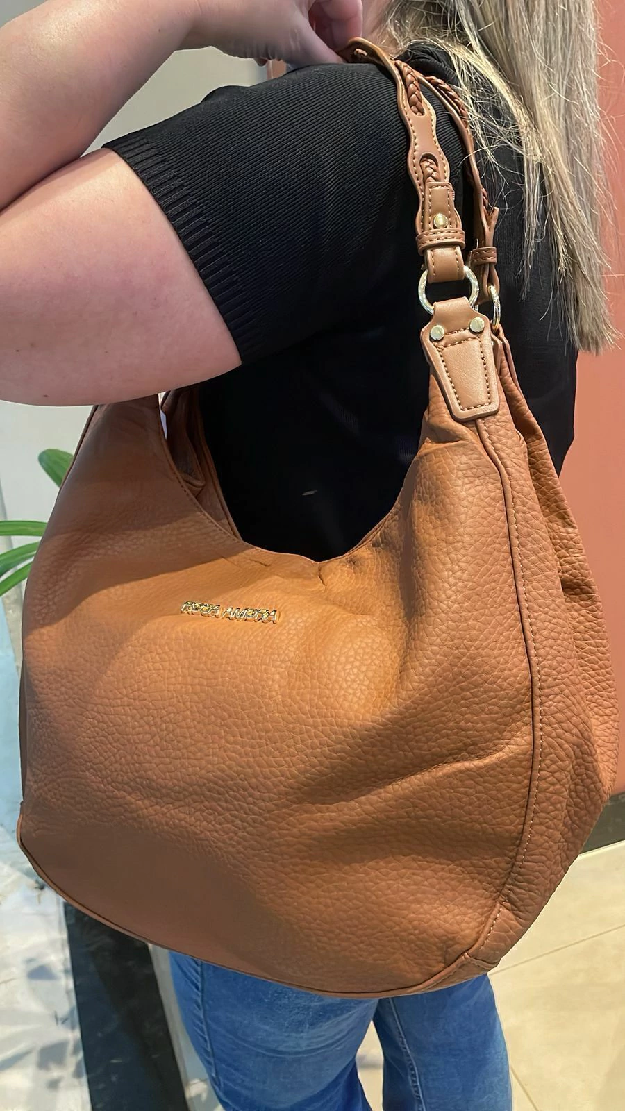 A alça longa de ombro é um charme à parte: além de super confortável, ela traz detalhes trançados que valorizam ainda mais a peça. Internamente, a bolsa conta com bolsinho com zíper e espaço para chaves, além de um zípper externo para mais praticidade.