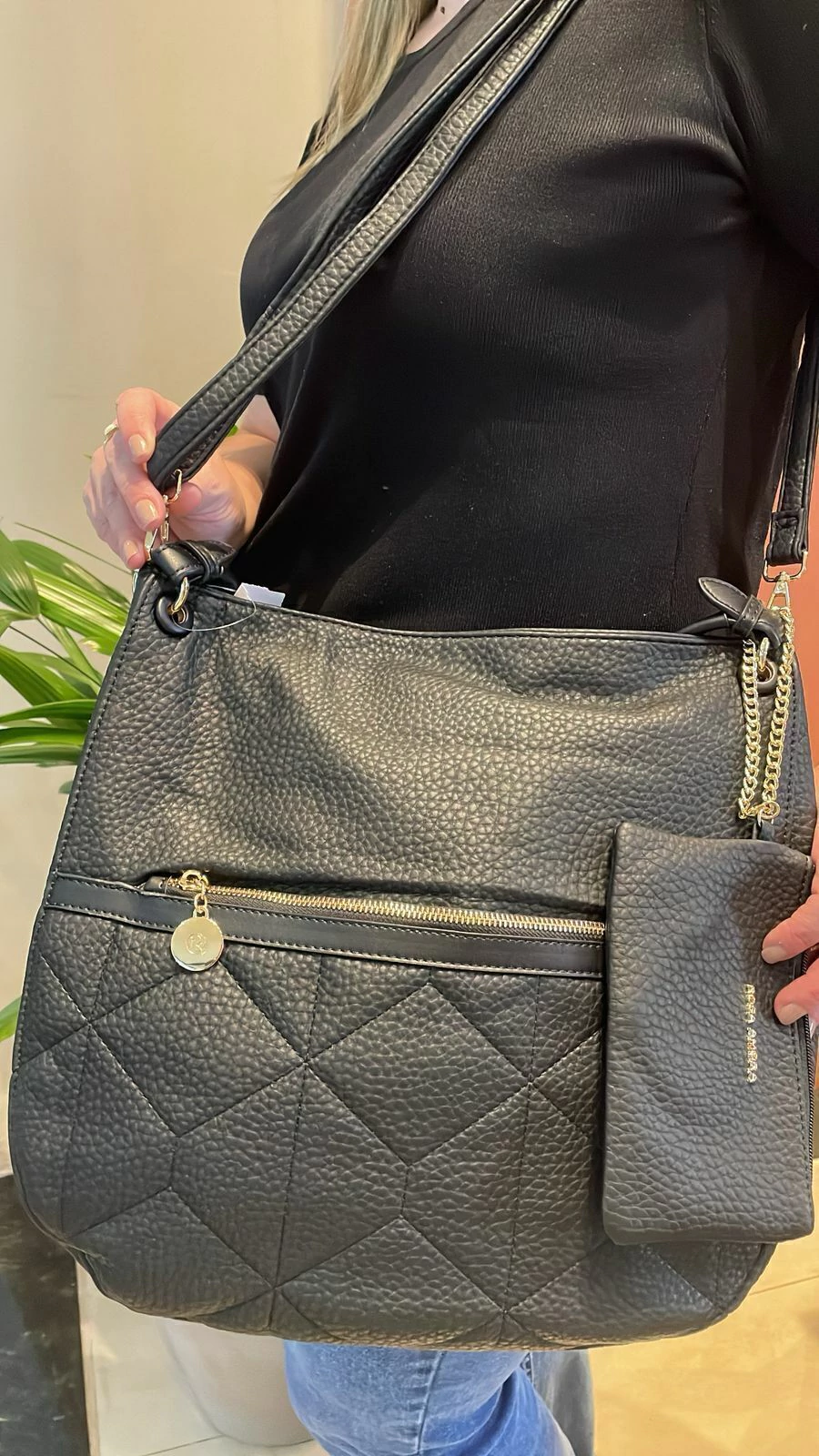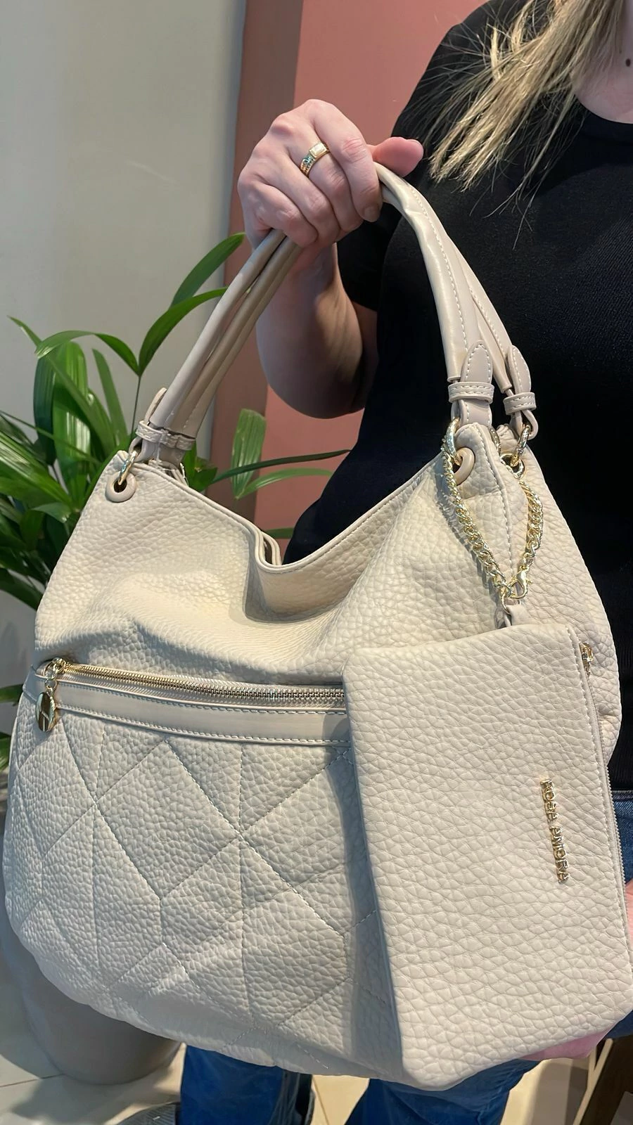 Para completar, a bolsa acompanha uma alça transversal removível, garantindo versatilidade e conforto para quem gosta de praticidade.