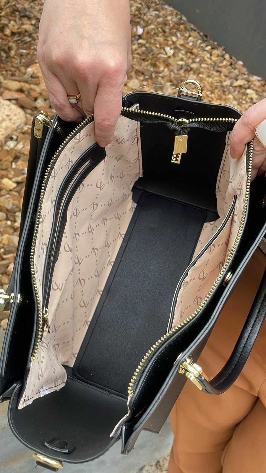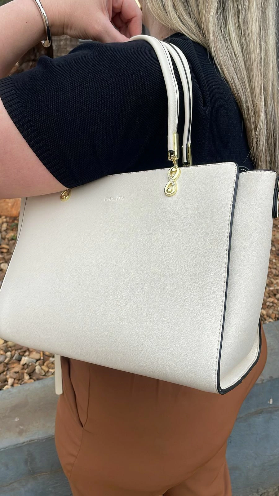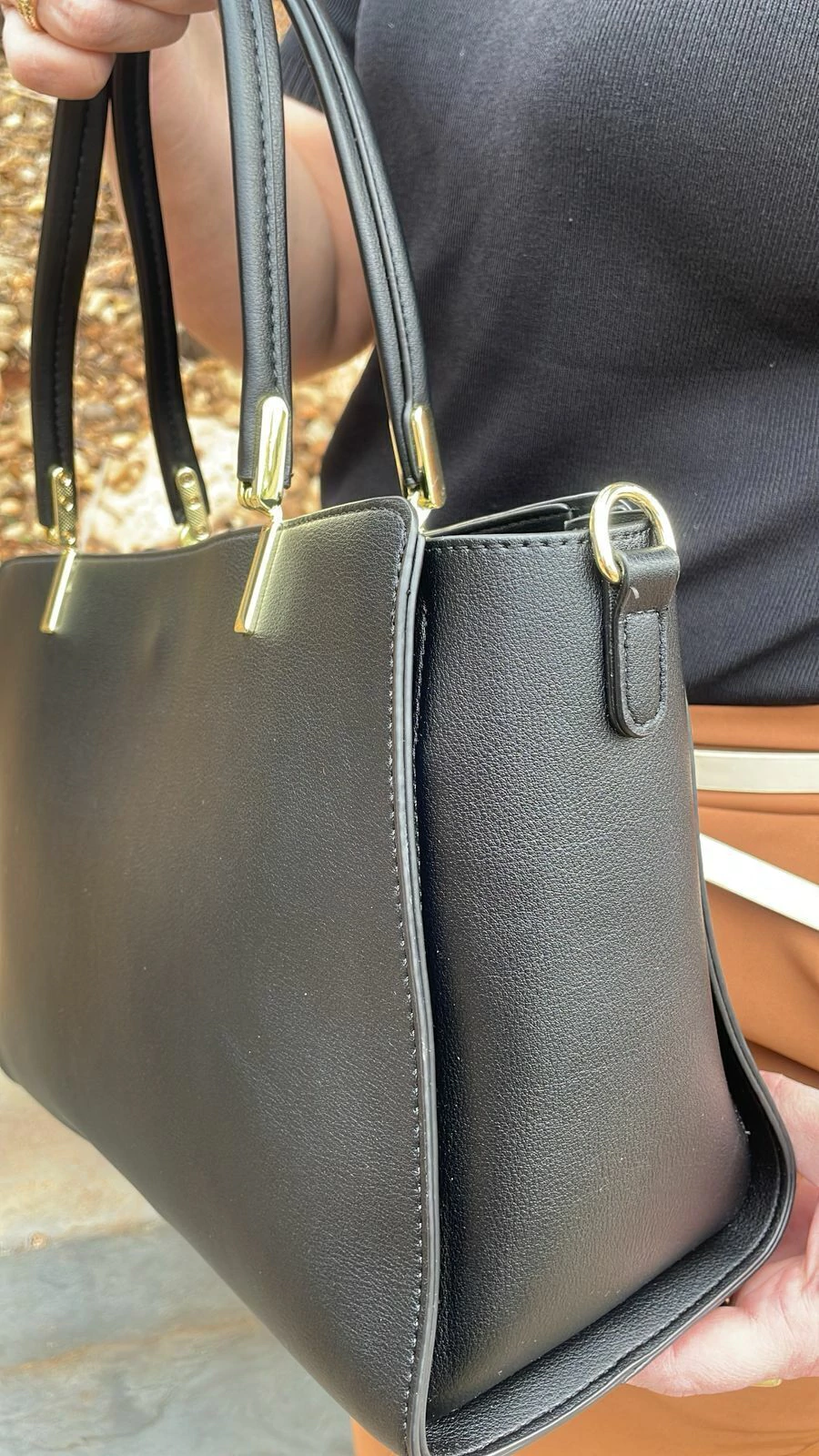 A Bolsa Margarida é uma peça estruturada, com design atemporal e acabamento premium, perfeita para quem busca elegância e organização no dia a dia. Seu formato clássico e o tamanho grande proporcionam conforto no uso e praticidade para levar tudo o que você precisa com estilo. O destaque fica por conta do fecho frontal em metal dourado (de linha premium, que não oxida), que traz sofisticação ao modelo.