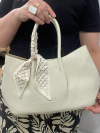 A alça transversal removível permite diferentes formas de uso, e o lenço transpassado na alça de mão, também removível, adiciona um toque de charme e sofisticação, elevando o estilo da peça.