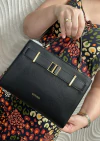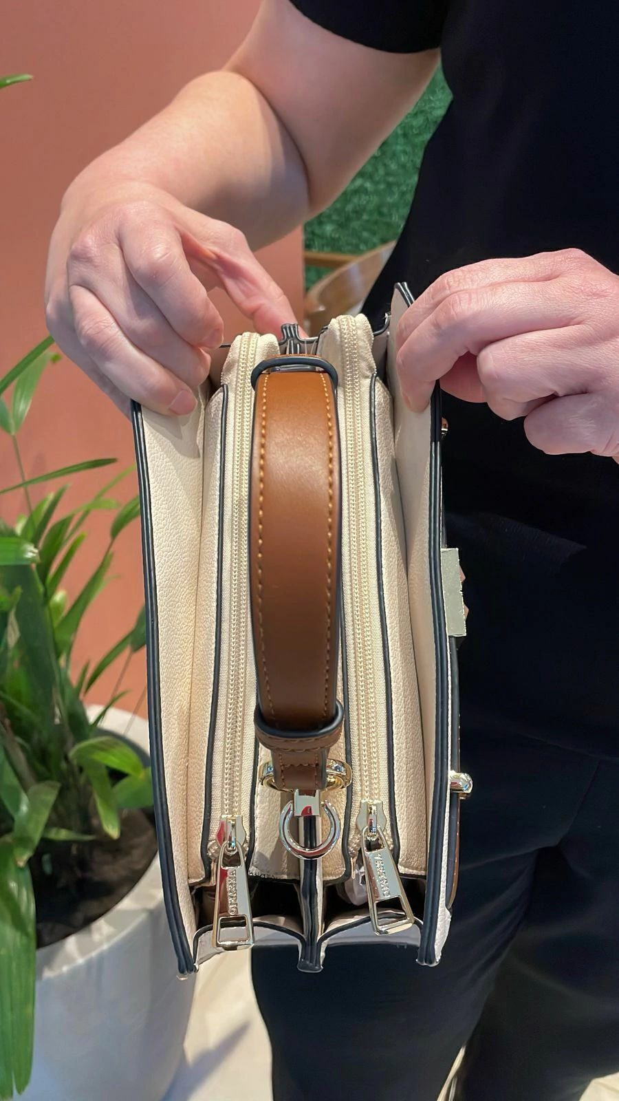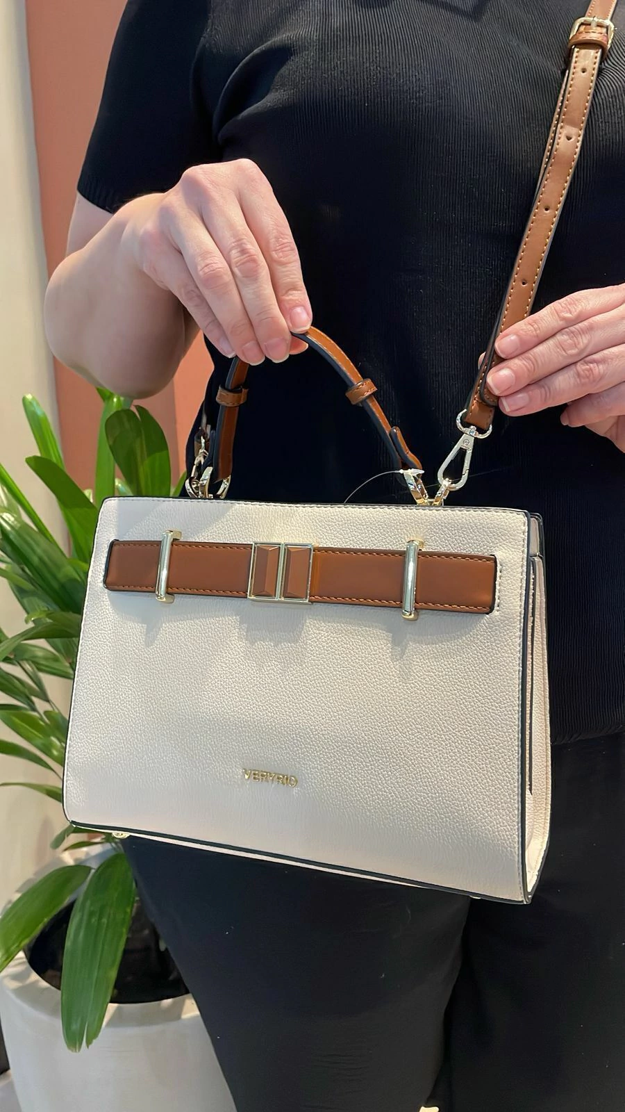 O charme fica por conta do detalhe frontal que lembra um cinto e dos metais dourados de alta qualidade que não oxidam, conferindo sofisticação e durabilidade ao produto.