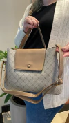 A bolsa possui duas divisórias principais: uma com fechamento por zíper e outra com aba e botão magnético, garantindo segurança e praticidade para o dia a dia. Na parte interna, conta com um bolso com zíper, ideal para organizar pequenos itens.